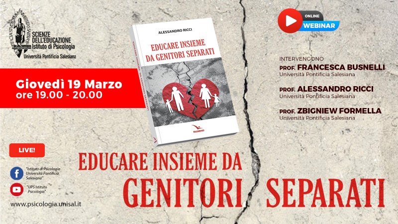 A partire da queste domande prende forma il webinar, organizzato dall'Istituto di Psicologia dell'Università Pontificia Salesiana, "Educare insieme da genitori separati", in programma giovedì 19 marzo 2026, dalle ore 19:00 alle 20:00. L’incontro trae spunto dal libro omonimo, a cura del prof. Alessandro Ricci, testo che approfondisce il tema della responsabilità genitoriale condivisa dopo la separazione e offre una riflessione pedagogica e psicologica orientata al benessere dei figli.