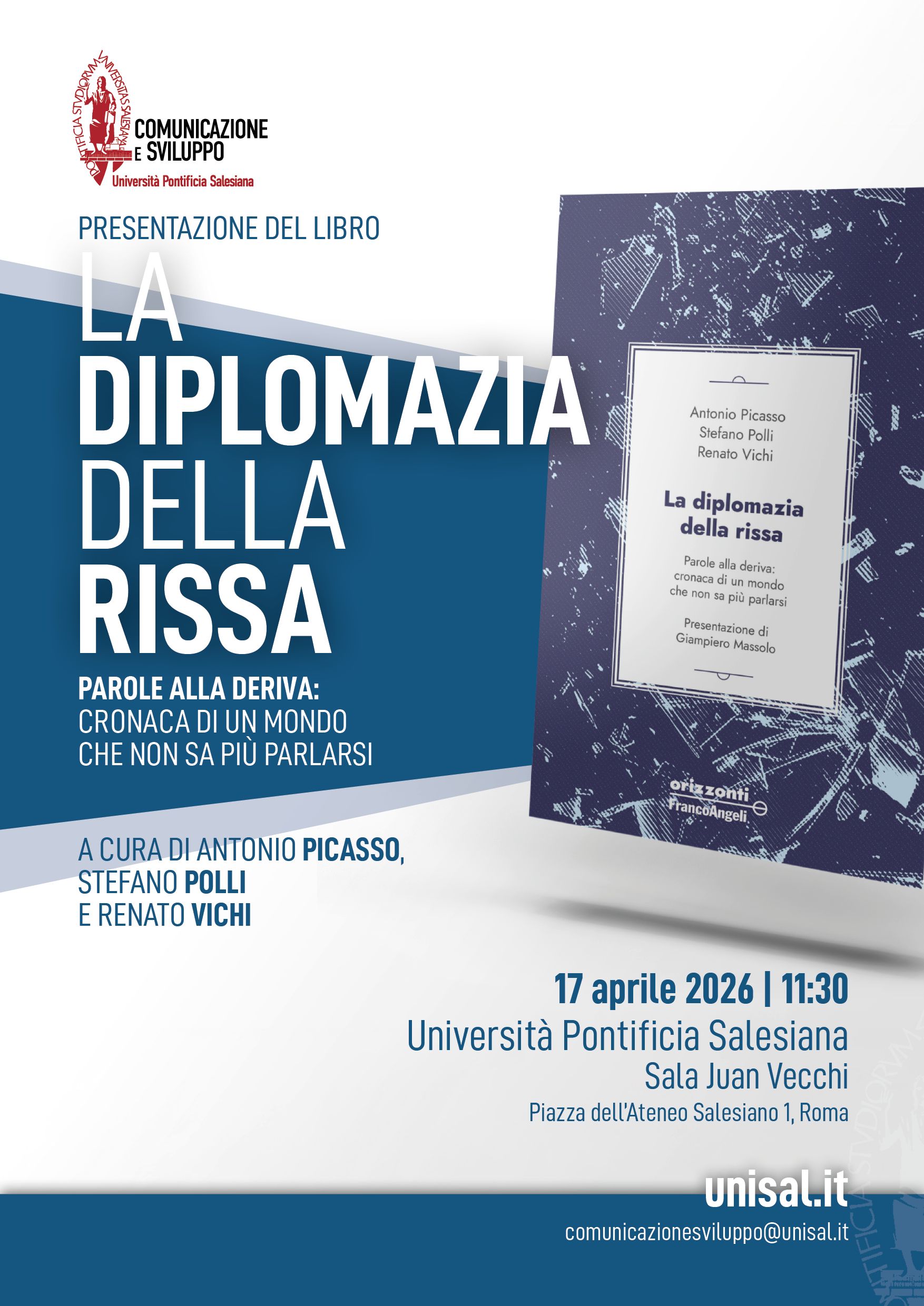 Presentazione libro: La diplomazia della rissaPresentazione del volume La diplomazia della rissa, a cura di Antonio Picasso, Stefano Polli e Renato Vichi. Sala Juan Vecchi 11:30 |