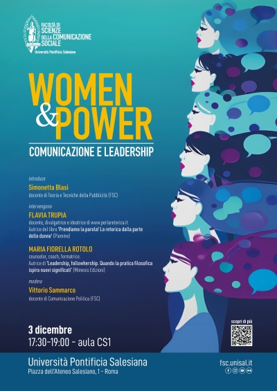 Women and Power: Comunicazione e LeadershipLa Facoltà di Scienze della Comunicazione sociale organizza la lezione aperta Women and Power: Comunicazione e Leadership, un incontro per approfondire le dinamiche che ancora oggi possono limitare l’espressione piena della voce femminile, con particolare attenzione alle sfide legate ai pregiudizi o alle dinamiche dei contesti di riferimento. CS1 - FSC 17:30 - 19:00 |